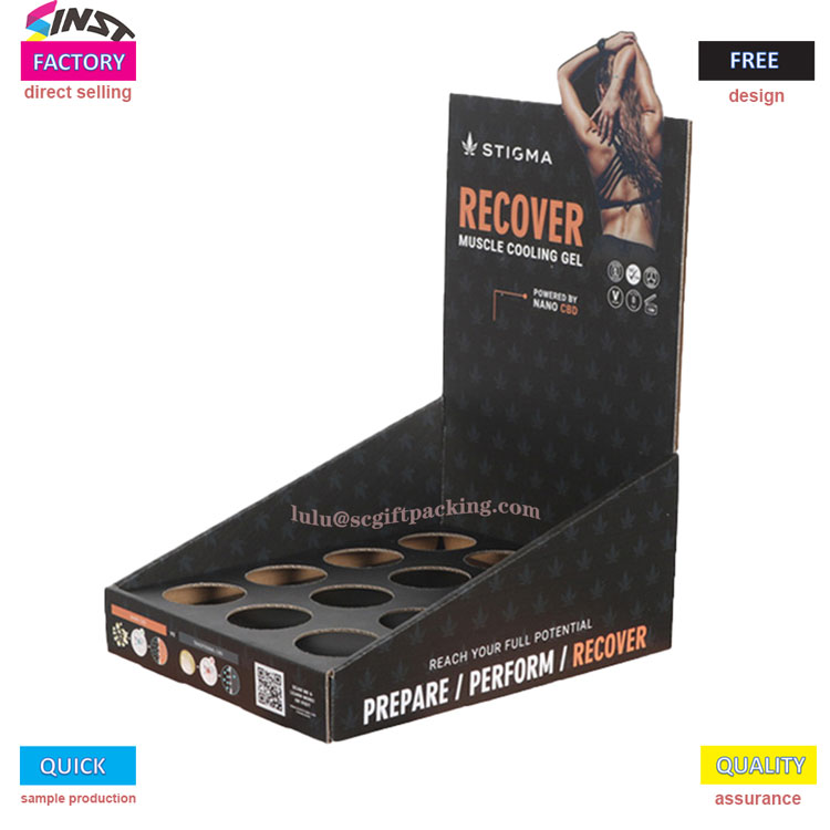 Αυτό το κουτί προβολής προϊόντων υγείας με κενό χαρτί διαστημικής διαθέτει μια μινιμαλιστική αισθητική με μαύρο φόντο ζεστό σφράγιση και ένα ισχυρό οπτικό αποτέλεσμα, υπογραμμίζοντας το σημείο πώλησης του πυρήνα της μυϊκής χαλάρωσης μετά την άσκηση. Το ράφι οθόνης υιοθετεί ένα σχέδιο αποθήκευσης κυκλικού πλέγματος, ο οποίος όχι μόνο σταθεροποιεί την οθόνη αλλά επίσης απελευθερώνει την υφή των προϊόντων,