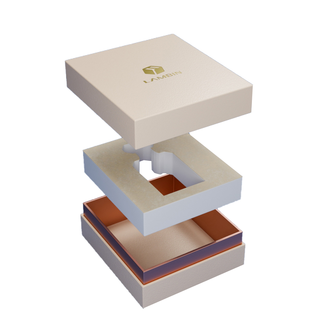 Από την εκρηκτική προβολή, η λογική σχεδιασμού αυτού του κουτιού δώρων είναι πολύ σαφής: είναι ένα κουτί δώρου που κατασκευάζεται με ζύμωση και συναρμολόγηση του ανώτερου καλύμματος και της εσωτερικής επένδυσης, καθώς και το κάλυμμα κάτω και την εσωτερική επένδυση μαζί. Το επάνω στρώμα είναι ένα μπεζ κουτί με ένα λογότυπο χρυσού μάρκας ανάγλυφο στην επιφάνεια, παρέχοντας μια λεπτή και μη γρατσουνιά. Το μεσαίο στρώμα είναι το κλειδί - το σχήμα της κοίλης επένδυσης ταιριάζει απόλυτα με το κάτω μέρος του κοινού μπουκαλιού αρώματος, σαν ένα "μικρό δίσκο" προσαρμοσμένο για το μπουκάλι. Ακόμη και αν το κουτί τοποθετηθεί στη βαλίτσα, το μπουκάλι αρώματος δεν θα κυλήσει και θα συγκρουστεί στο κουτί. Η εμφάνιση υιοθετεί το στυλ ενός κουτιού δώρου πλαισιωμένου, με ειδικό χαρτί ανάγλυφο στην επιφάνεια και τριαντάφυλλο χρυσό ειδικό χαρτόνι στο πλαίσιο. Η επένδυση είναι κατασκευασμένη από λευκό ύφασμα φανέλας Eva. Από την αποσυσκευασία έως την εμφάνιση, κάθε γωνία αποπνέει μια πολυτελή υφή.