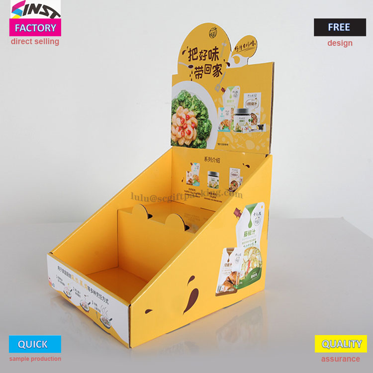 Πρόκειται για ένα πλαίσιο εμφάνισης από χαρτόνι καρυκεύματος σούπερ μάρκετ, το οποίο μπορεί να είναι ένα πλαίσιο οθόνης πιπεριού, πλαίσιο οθόνης αλατιού, πλαίσιο οθόνης ουσίας κοτόπουλου κλπ. Είναι κυρίως σε έντονο κίτρινο χρώμα και έχει γίνει ένα εντυπωσιακό εργαλείο για την οθόνη του πάγκου!